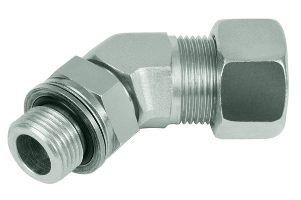 Adjustable 45°-screw-in connection, metric thread with o-ring and locknut